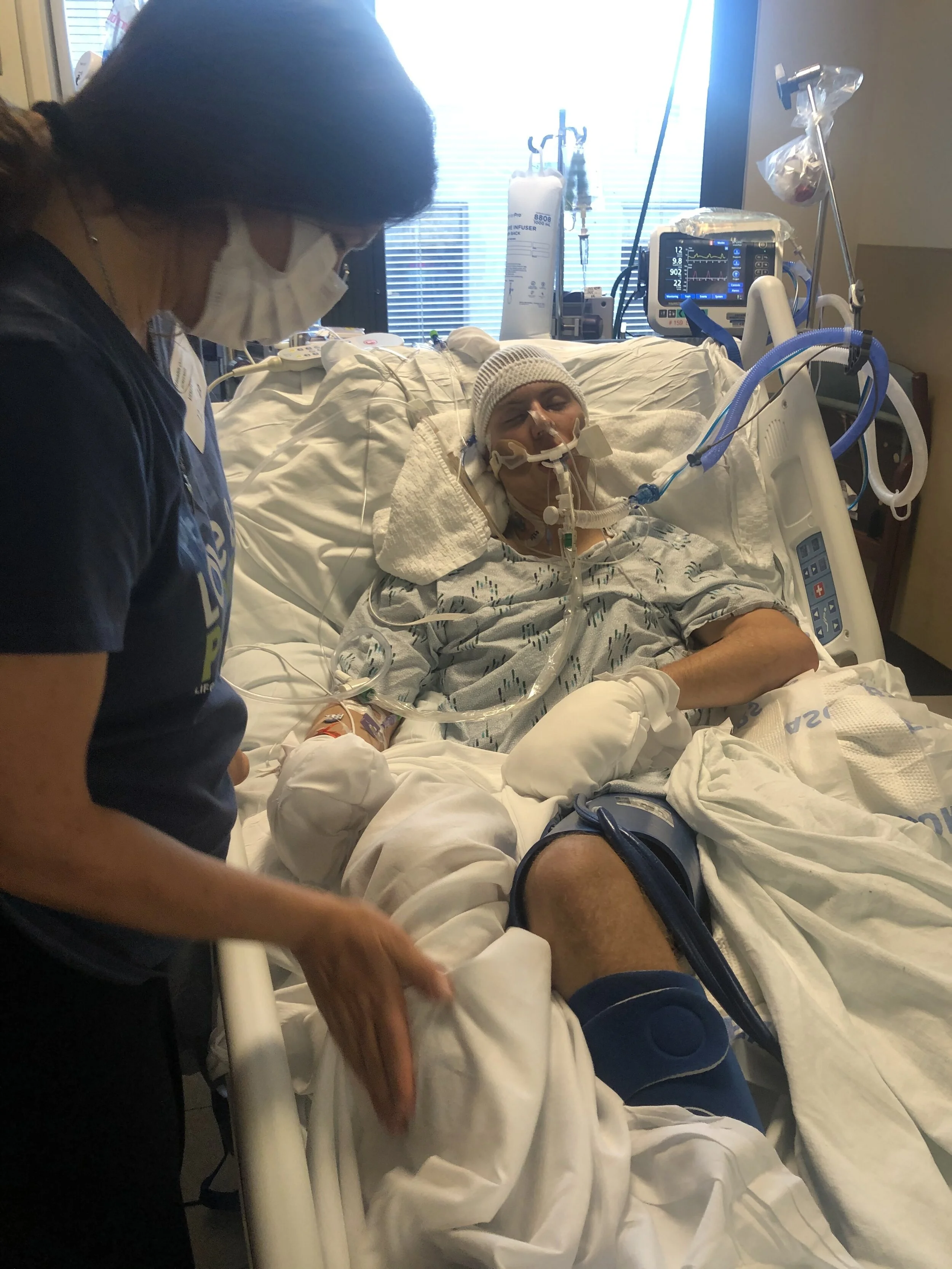 As Jordan and I were pulling an order of pipe, I told him I didn’t feel good. I passed out in front of him and fell off the forklift headfirst. Little did I know, the person I couldn’t relate to, would be the one who saved my life. He called 911 and started CPR immediately with the guidance of the emergency operator on speakerphone. As Jordan was doing CPR, my dad was on his knees praying to God, prayer was what he instinctively turned to. My uncle ran over to me with an AED. He placed it on me and there was an error message. The AED didn’t work. My uncle took over doing CPR until a team of firefighters showed up. They shocked me at least two times. I was still unresponsive. I was taken to Advent Health. When I arrived I was put in an induced coma. I was given hyperthermia protective treatment, where my body was frozen to 91 degrees for 24 hours. My parents were told that I had a 50% chance of surviving. To the surprise of the hospital staff, I was responsive after the hypothermia treatment and made improvements daily. While I was in the hospital, the prayers and support from my family and friends was overwhelming.